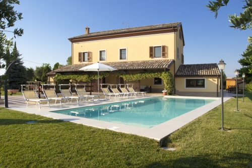 Vervollständigen das Anwesen eine Doppelgarage, ein Keller, ein Nebengebäude und etwa 5.000 qm Land mit 90 Olivenbäumen, die der Residenz einen authentischen Hügelcharme nur wenige Minuten vom Meer von Senigallia verleihen.